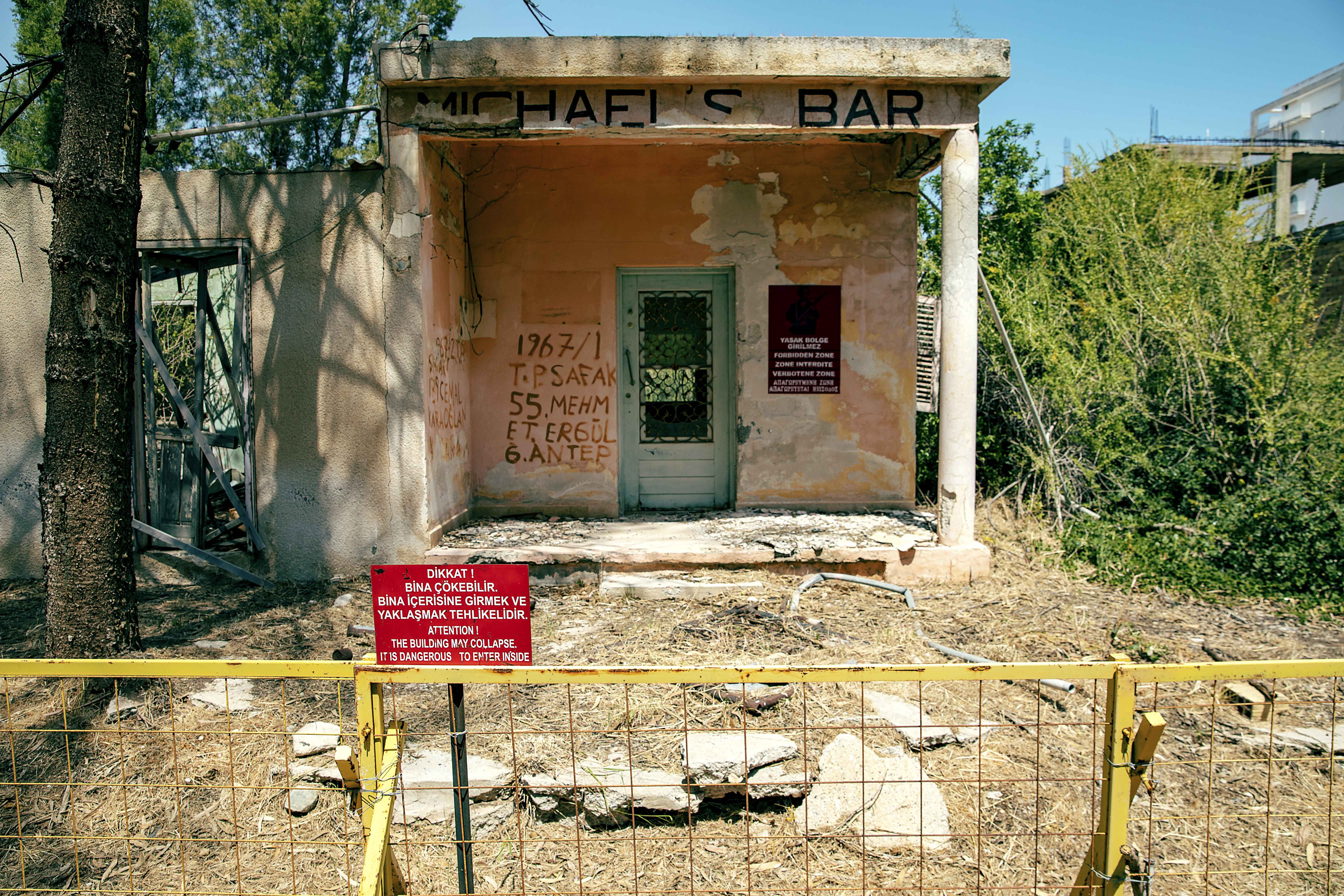 Michael’s Bar was marked by a Turkish soldier in 1967 with the inscription: “1967/1 T.P. Şafak 55, Mehmet Ergül G.Antep.” Mehmet Ergül, whose name appears here, was from Gaziantep, Turkey. The “1967/1” indicates his conscription date (the first military call-up of that year) while “Şafak 55” signifies that he had 55 days remaining to complete his service.
