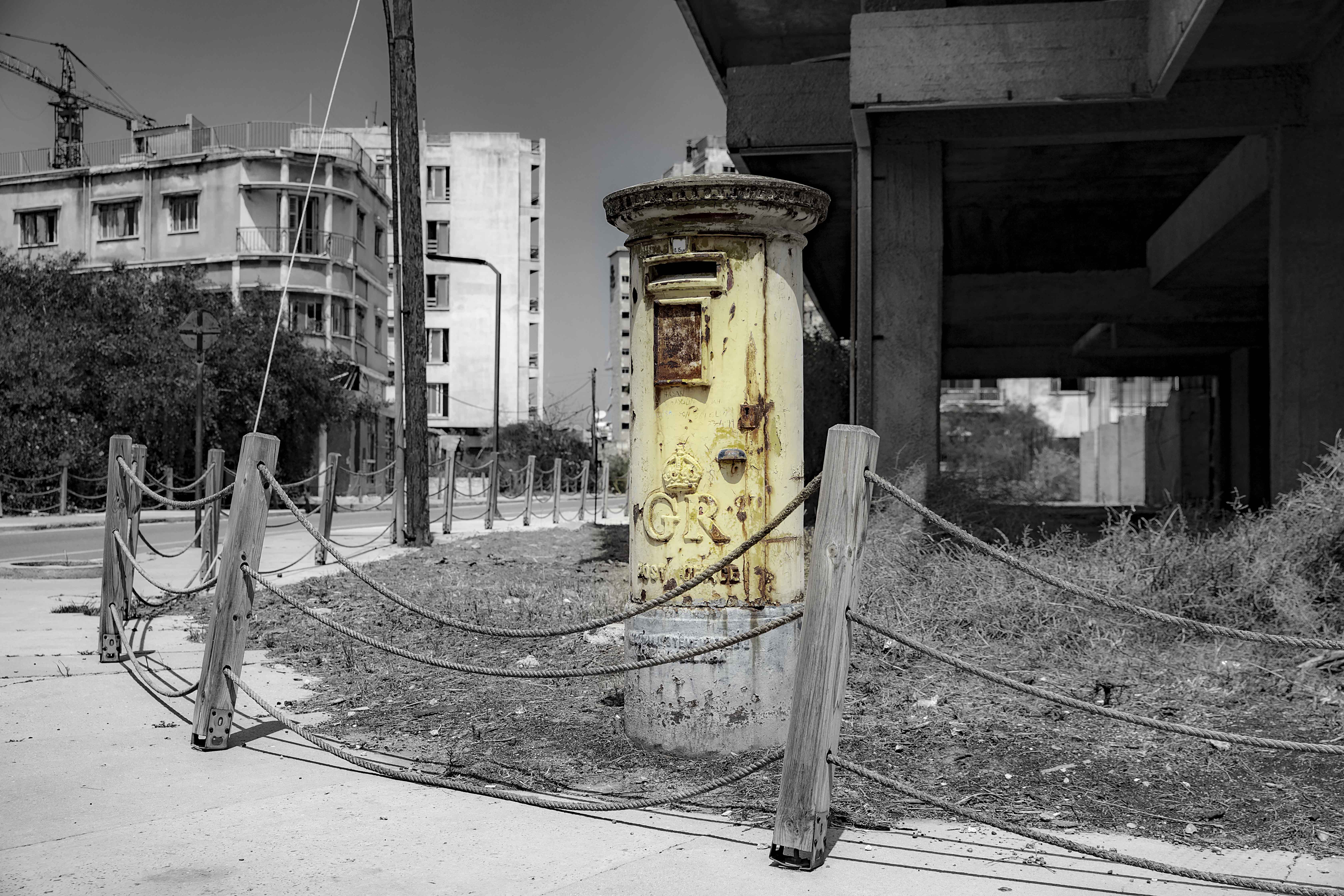 As I mentioned earlier, there is a third country present in Cyprus. In 1878, the island came under British administration as a protectorate through a lease agreement with the Ottoman Empire. When the Ottomans joined the Central Powers in 1914 during World War I, Britain formally annexed Cyprus and placed it under military rule. This arrangement remained in place until Cyprus gained independence in 1960. As a result, it’s not unusual to find British mailboxes scattered around the island. In Cyprus, these boxes bear the engraving “GR,” short for “Georgius Rex”, Latin for “King George.” I came across a few of them… one in front of Bank of Cyprus and another at this location (the picture above).