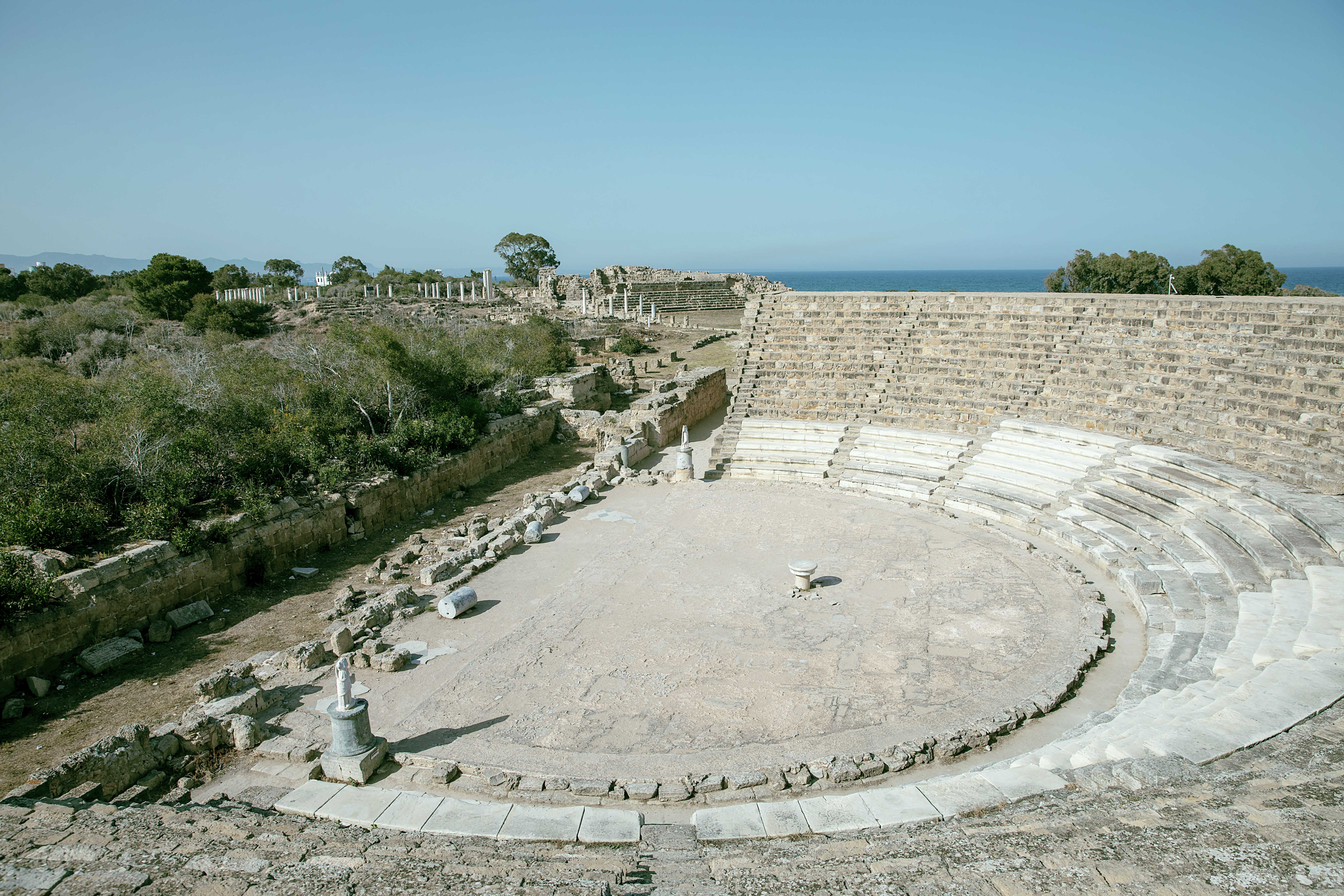 According to legend, Salamis was founded around the 11th century BCE, possibly by Greek settlers from the island of Salamis in Greece or by refugees of the Trojan War. The site is home to an impressive array of ruins, including an agora (marketplace), a gymnasium and baths, a Roman theatre, royal tombs, aqueducts, storage rooms, cisterns, and much more to explore.