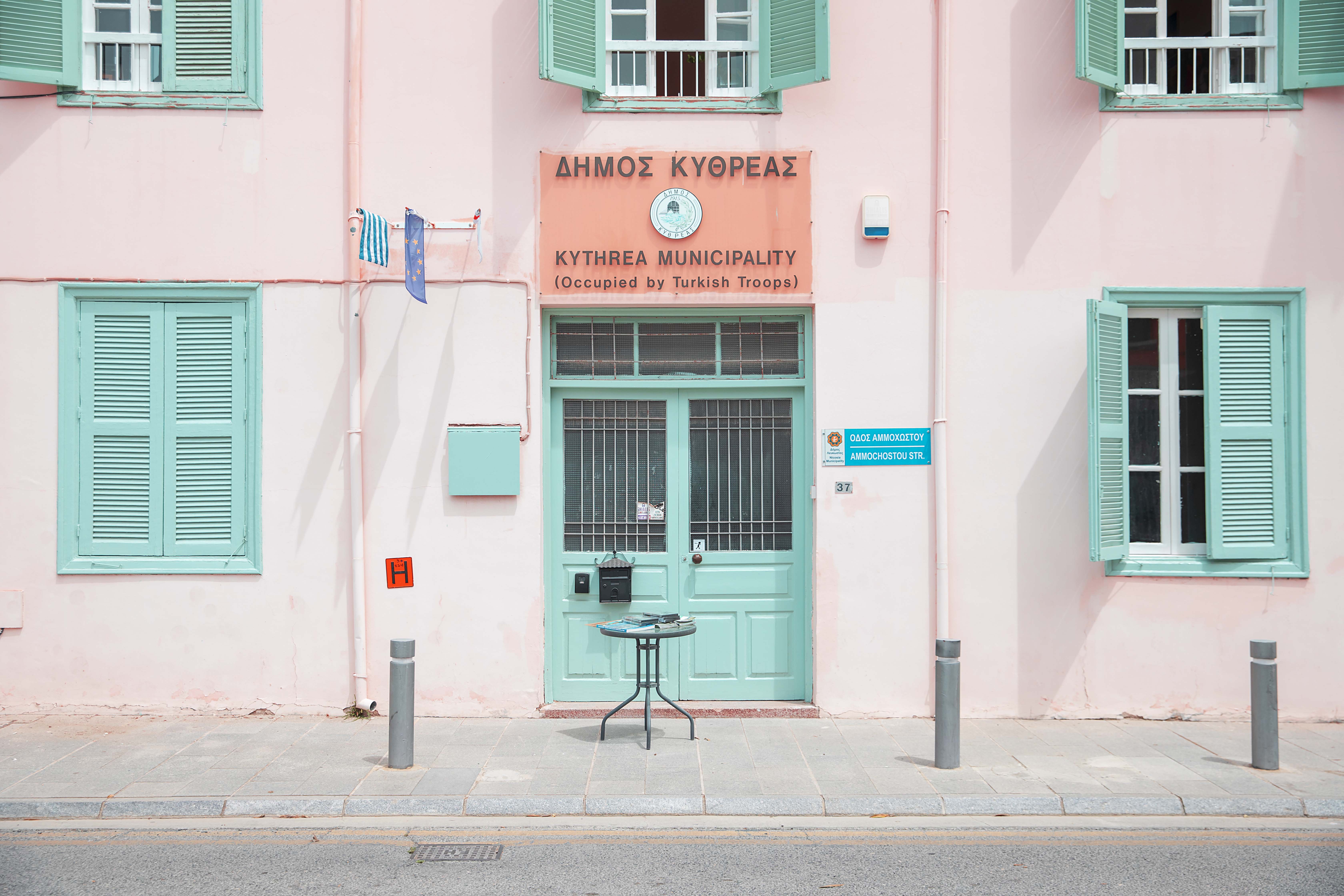 Since Northern Cyprus is administered by the Turkish Republic of Northern Cyprus, you’ll come across municipal buildings in Nicosia that symbolically represent towns located on the Turkish-controlled side of the island. One that particularly caught my attention was the “Kythrea – Değirmenlik” city hall.